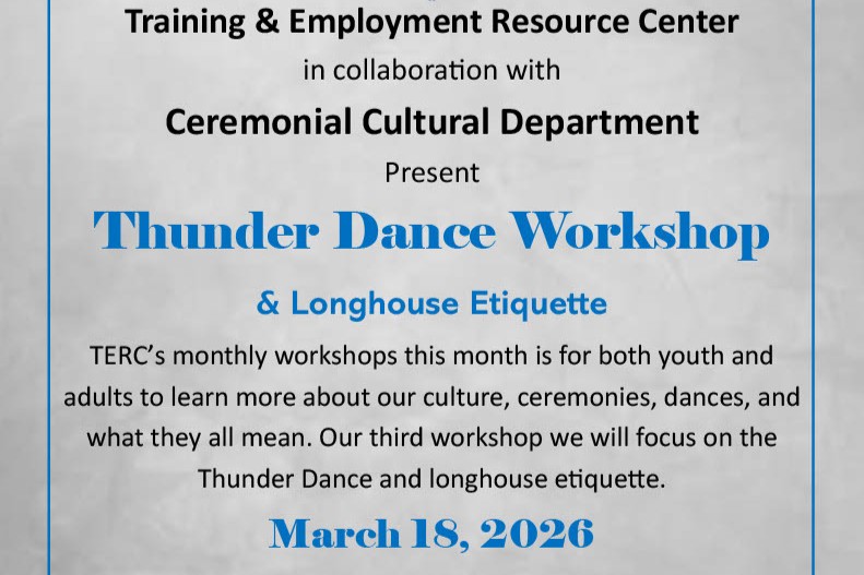 TERC and the Ceremonial Cultural Department present a Thunder Dance Workshop and Longhouse Etiquette training for both youth and adults to learn more about Seneca culture, ceremonies, dances, and their … Continued